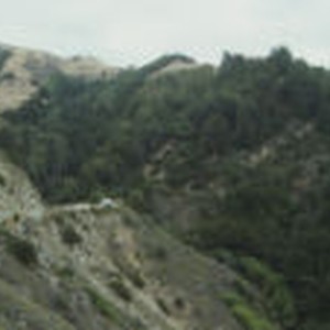 Steep mountain sides are covered with brush and tress at Big Sur.