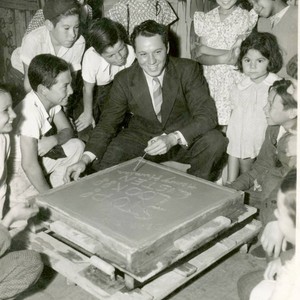 Concrete slabs Hunter, Henry, 1907-1985 Motion picture actors and actresses--California--East Los Angeles Motion picture theaters--California--East Los Angeles Pedestrian accidents--Public relations Accidentes peatonales--Relaciones publicas Actores cinematograficos--California--Este de Los Angeles Cines--California--Este de Los Angeles Losas de hormigon