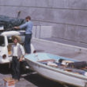 Chip Hogue loading up supplies for the Salton Sea trip at Steve Hall.