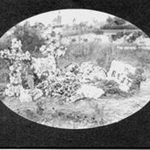 Photo--black and white: The gravesite of Nelson Drago in 1903 at Sebastopol Memorial Lawn. The Drago family had a ranch in Occidental area on Stoltz Lane in the early 1900s.