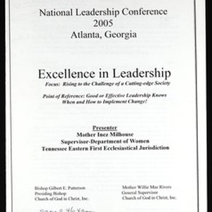 Syllabus for the National Leadership Conference, "Rising to the challenge of a cutting-edge society", Church of God in Christ, Atlanta, Georgia, 2005. [Description English/roman)]