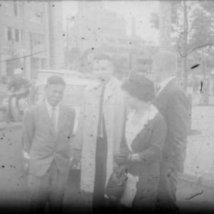 Doctor and others standing on street corner