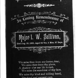 Photo--black and white: Obituary remembrance card for Major Isaac Wilson Sullivan one of the first pioneers in Sonoma County. Born 1807 in Kentucky, died August 25, 1891 in Graton, CA.