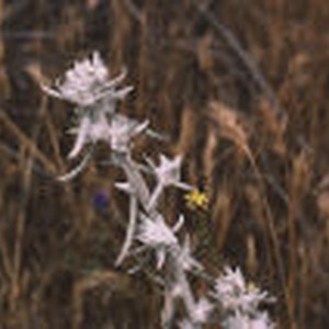 Unknown asteraceae or compositae with yellow flower in the background found in Johnson's Pasture.