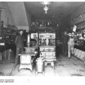 Photo--black and white: The Finnell Hardin Hardware Store in Sebastopol. This photo was used in a 1905 brochure for the store but the men are unidentified. It was the largest hardware store in western Sonoma County at the time as they carried stoves, cutlery, wallpaper and agricultural implements and an extensive supply of plumbing, windmill and well equipment. The Store became Week's Hardware in 1909.