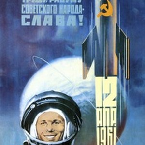 Soviet poster dedicated to the soviet outer space exploration program. Caption reads, "Мужеству, труду, разуму советского народа — слава! 12 Апр. 1961 / Muzhestvu, trudu, razumu sovetskogo naroda -- slava! 12 Apr. 1961", meaning, "Glory to the courage, hard work and intelligence of the soviet people! April 12, 1961". [Description English/roman)]