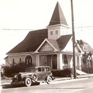 Photo--black and white postcard: Sebastopol Congregational Church on 301 Main Street circa 1930s.