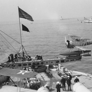Image / Vought O2U-1 launching from battleship New Mexico US Navy photo