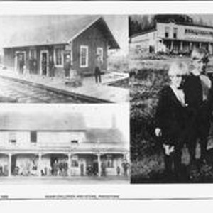 Photos of Freestone in 1888 including the Freestone Railroad depot, the Freestone Hotel and the J. F. Mann & Sons merchandise store with the Mann children in front