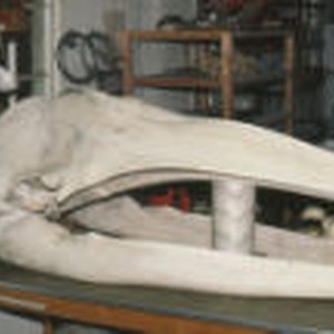 The left side of a whale skull.