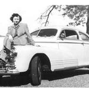 Photo--black and white: Bunni Cornelia E. Myers Streckfus (1906-2001) seated on hood of car at the Sonoma Golf Club dated February, 1942. Bunni was a longtime Sebastopol resident and was married to Sebastopol Mayor George Streckfus.
