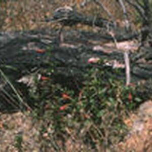 Bush with red flowers and dark green leaves at Pelican Bay.