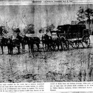 Photo--black and white: W. H. Lee with a load of lumber (4,000 feet, Rustic) at the corner of Santa Rosa and Bodega Avenues in Sebastopol in 1873. Original photo from the collection of Walter Monroe, former Sebastopol banker and his wife Eleanor.