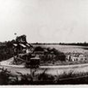 Photo--black and white: Farm home of John A. and Barbara Ellen Brown, built in late 1800s, on Sebastopol's eastern edge with Laguna at right background. Several circa 1910 cars ar visible on road and in the driveway. Various out-buildings to the right of the farm house. John Brown bought 1,400 acres of land along the Laguna de Santa Rosa, most of which he leased to other farmers. The open field at the right of the picture became Cnopius Field--Sebastopol's Airport, in 1925. The road in front of the house is today's Bodega Avenue--Highway 12. The farm house is used today (2008) as a veterinarian's office--Animal Kingdom Animal Hospital