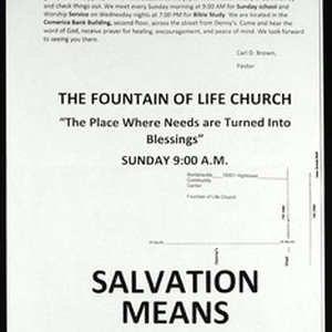 Fountain of Life Church flier, Humble, Texas, [s.d.]. [Description English/roman)]