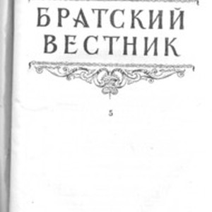 In 1945, The United Union of Evangelical Christians (EC) and Evangelical Christian Baptists (ECB) published the first issue of the Brotherly Herland. Iakov Ivanovich Zhydkov, chairman of the national (USSR) Union of Evangelical Christians and Baptists, became the chief editor. The editorial committee consisted of M.I. Golyaev, M.A. Orlov, and Alexander Vasi'yevich Karev. The leadership of the NUECB (all-National Union of Evangelical Christian Baptists) set the main task of the journal to form "Unity" in the midst of protestant churches of the moderate type. Thus, in the preface of the first issue of the journal it was stated, "The task of the Brotherly Herald is to work in such a way that unity might penetrate the bodies and blood of all brothers and sisters and become indestructible even going through tests and difficulties. May the Lord Himself make one united nation of two movements in His Name. Our mottos are the words from the Holy Scripture, they are dear to our hearts, 'We preach Christ crucified' (1 Cor. 1:23), 'Stand firm in one spirit, contending as one man for the faith of the gospel' (Phil. 1:27), 'One Lord, one faith, one baptism' (Eph. 4:5)". ❧ The second purpose of the periodical (which was to be published every other month) was to inculcate "correct training" of church members (correct from the spiritual as well as civic points of view). This purpose was successfully fulfilled by publication of texts of sermons, spiritually-edifying articles, official appeals and reports. The journal consisted of the following contents: 1. Religious and patriotic Evangelical Christians and Baptists and the Motherland. 2. Sermons and spiritual articles. 3. From history of the Evangelical Baptist movement in USSR. 4. From history of Christianity. 5. Biographies and necrologies of Evangelical Christians and Baptists. 6. Life and activity of NUECB. ❧ The address of the editorial office was in Moscow, Pokrovsky Boulevard, Maliy Vuzovsky Lane, 3. [Description English/roman)] В 1945 году объединенный союз ЕХ и ЕХБ издал первый номер периодического издания «Братский Вестник», главным редактором стал председатель Всесоюзного Совета евангельских христиан и баптистов Я.Жидков. В редакционную комиссию вошли Голяев М.И., Орлов М.А., Карев А.В. Основной задачей журнала руководство ВСЕХБ видело в формировании «Единства» среди протестантских церквей умеренного типа. Так в предисловии к первому номеру журнала писалось: Задача «Братского вестника» - так повести свою работу, чтобы дело единения вошло, в плоть и кровь всех братьев и сестер, чтобы оно стало нерушимым даже при испытаниях и трудностях, и чтобы теперь уже Сам Господь соделал из двух течений один народ во имя Свое. Нашими лозунгами являются дорогие всем нам слова Св. Писания: ‹Мы проповедуем Христа распятого› (1 Кор. 1, 23) ‹Стойте в одном духе, подвизаясь единодушно за веру евангельскую› (Фил. I, 27) ‹Один Господь, одна вера, одно крещение› (Ефес. 4, 5)». ❧ Вторая цель этого периодического издания которое планировалось издавать один раз в два месяца было прививать «правильное воспитание» членов церкви «как с духовной, так и с гражданской точки зрения» . Данная задача достаточно успешно выполнялась посредством публикации проповедей, духовно-назидательных статей, официальных обращений и отчётов. Журнал состоял из следующих рубрик: 1. Религиозно-патриотический Евангельские Христиане и Баптисты и родина. 2. Проповеди и духовные статьи. 3. Из истории Евангельско-Баптистского движения в СССР. 4. Из истории Христианства. 5. Биографии и некрологи Евангельских Христиан и Баптистов. 6. Жизнь и деятельность ВСЕХИБ. 7. Жизнь общин на местах. 8. Корреспонденция. ❧ Адрес редакции находился в г. Москве, Покровский бульвар, Малый Вузовский пер., дом. 3." [Description (original non-English/roman language/script)]