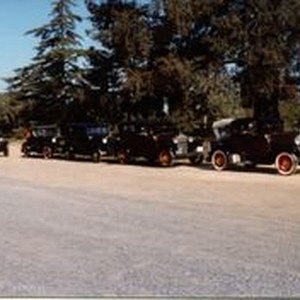 Vintage cars visit the Hallberg Apple Farm roadside stand, October, 1982