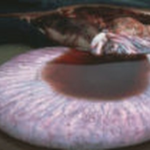Placenta, highly vascularized, and a fetus with amniotic fluid surrounding it.