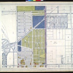 WPA Land use survey map for the City of Los Angeles, book 10 (Shoestring Addition to San Pedro District), sheet 7. Includes: [Title page and] legend [for Book] no. X Composite index to Land use map books [for Book 10] Index to Book no. 10. Land use survey - City of Los Angeles. Department of City Planning. These maps were prepared with the assistance of the Works Progress Administration project no. 665-07-G-226 through 1939 to 1940. The land use data contained herein was compiled from a survey made with the assistance of the Civil Works Administration project no. 642, State Emergency Relief Administration project nos. 1-F2-318 and 1-F2-318A and Works Progress Administration project nos. 65-3-4377, 1101-2011 and 465-03-3-106. This survey functioned from Dec. 18, 1933 to May 8, 1939 and covers approximately 460 square miles within the boundary of the City of Los Angeles. It includes 347 colored drawings bound in 10 volumes of which this is no. X. The land use survey was supervised by the Zoning Engineer. The land use maps were supervised by the Illustrative Planning Engineer for the Sponsoring Department.