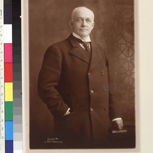 Three-quarter length studio photographic portrait of Henry E. Huntington. "Copyright 1907 by Theo. C. Marceau, N.Y." on print in lower left corner. "Marceau, 258 Fifth Avenue, New York" on print in lower right corner.