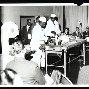 Photograph of a group of people at a meat cutting demonstration, Jones Training School, Lewisburg, Tennesse, 1964 December 10. [Description English/roman)]