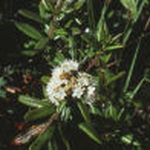 A single grouping of flowers growing on a labrador tea plant.