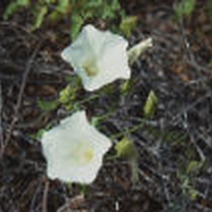 A close up of two island false bindweed blooms growing along the west side of San Clemente Island.