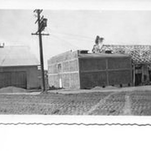 Photo--black and white: Remodeling of O. A. Hallberg & Sons apple dryer / dehydrator 1944. At Graton and Bowen Roads in Graton.