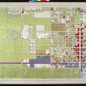 WPA Land use survey map for the City of Los Angeles, book 3 (San Fernando Valley from Canoga Park District to Van Nuys District), sheet 35. Includes: [Title page and] legend [for Book] no. III Composite index to Land use map books [for Book 3] Index to Book no. 3. Land use survey - City of Los Angeles. Department of City Planning. These maps were prepared with the assistance of the Works Progress Administration project no. 665-07-G-226 through 1939 to 1940. The land use data contained herein was compiled from a survey made with the assistance of the Civil Works Administration project no. 642, State Emergency Relief Administration project nos. 1-F2-318 and 1-F2-318A and Works Progress Administration project nos. 65-3-4377, 1101-2011 and 465-03-3-106. This survey functioned from Dec. 18, 1933 to May 8, 1939 and covers approximately 460 square miles within the boundary of the City of Los Angeles. It includes 347 colored drawings bound in 10 volumes of which this is no. III. The land use survey was supervised by the Zoning Engineer. The land use maps were supervised by the Illustrative Planning Engineer for the Sponsoring Department.