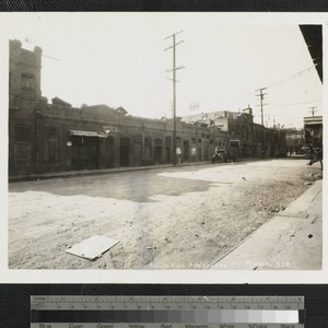 View of attached brick buildings on Apablasa Street in Old Chinatown, Los Angeles. Title transcribed from photograph. Note: The street name of "Apalabassa" is spelled incorrectly on the photograph, the correct spelling is "Apablasa".
