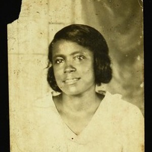 Damaged photograph of Emma F. Bradley, Texas, [s.d.]. "I found th… that I had left, thought you would like to see it, Miss E.F. Bradley" -- written on back. [Description English/roman)]