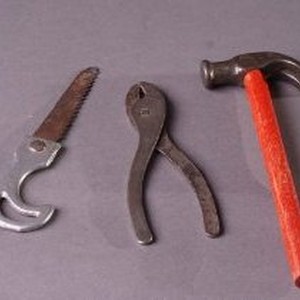 Toy Saw. Hand-held. Metal blade with curved, metal handle. Saw blade shows extreme oxidation.