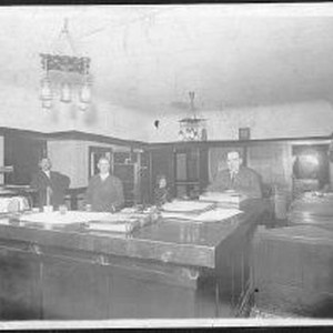 Interior view of the Elliott and Huston Real Estate and Insurance Office at 1010 8th Street in Sacramento and operated by J. Reed Elliott and Edward P. Huston