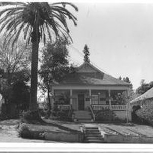Photo, black and white: Sebastopol house at 382 Florence Avenue a Queen Anne built in 1905 in the Raup Addition. House photographed in 1993 by Evelyn McClure for her book "Sebastopol, California : History, Homes and People."