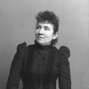 Studio portrait of unidentified woman in black dress with black chain necklace.