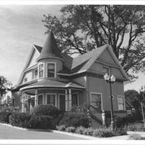 Photo, black and white: Sebastopol house at 876 Gravenstein Highway South a Queen Anne Shingle built about 1892 in the Wightman Addition. Known as the Baxter House. House photographed in 1993 by Evelyn McClure for her book "Sebastopol, California : History, Homes and People."