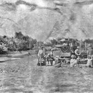 Photo--black and white: Riddell family picnic on the Russian River, 1908.