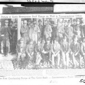 A photo copy of a news article. This Picture of Early Newspaper Staff Hangs on the Wall in Typographical Office. HANGING IN THE OFFICE of Sacramento Typographical union is the original of this picture of the early Sacramento Union men employed in the mechanical, editorial and circulation departments. In the photo are the names of 27 men. Note: Print is on contact sheet numbered 93/013/976s