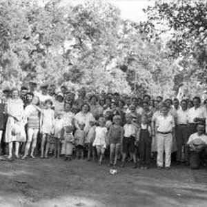 The First Low German Picnic from Sacramento. July 15, 1928 at the Gust Kerth farm in Amador County. Das Erste Platt Deutscher, (Picnic) von Sacramento July 15, 1929 Auf Der Gurst Kerth - Farm in Amador County. Wife and daughter of Photographer in photo Theresa M. Benning and Theresa A. Benning. Additional photos of this event: 1983/232/13786 - 87