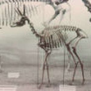A skeleton of a tetrameryx that lived during the Pleistocene epoch. It resembles a modern day antelope and is from the family of Antilocapridae.
