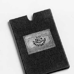 Container for a map entitled, "Cold Regions of California." This photo taken for a Sacramento History Center guidebook in the 1980's.