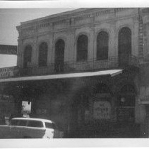 Exterior street scene at the corner of Third and J Streets in Sacramento prior to redevelopment. View shows the Rialto Cafe on the corner, the Hub Tavern, a barbershop, and other businesses as part of the Capitol Mall Redevelopment Project.