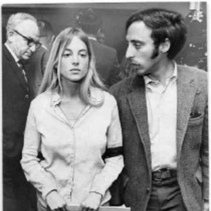 Wendy Schlesinger and Jim Hawley walk out of negotiations with Gov. Ronald Reagan at the California State Capitol. The two are leading a protest against police and National Guard tactics to quell unrest at UC Berkeley's "People's Park."