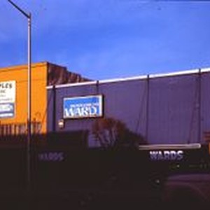 People's Music, Montgomery Ward Store and Sebastopol Book Shop are on North Main Street in downtown Sebastopol, California, 1977