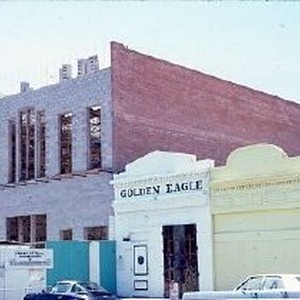 Old Sacramento. View of the Pacific Stables building on the corner of Second and L Streets. This view is of the site during reconstruction.