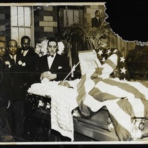 Photograph of Bishop L.H. Ford (4th from left) at the viewing at a funeral, Chicago, Illinois, [s.d.]. "City of Chicago Press Photographers Association Willis, photographer, phones KE8-0211, DO3-3543 This photo is not to be used unless credit lines be given to Willis' Photo's" -- stamped on back. [Description English/roman)]