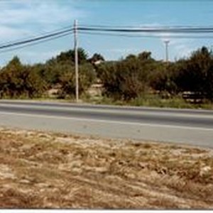 Photo--color: Highway 116 as seen from Don and Marcia Hallberg's Fruit Stand 1975 on Gravenstein Highway North. T The Hallbergs sold apple products at their stand. A Gravenstein apple orchard is seen across the road.