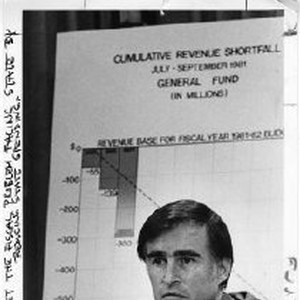 Governor Brown at podium explaining his executive order to meet the state's fiscal predicament.
