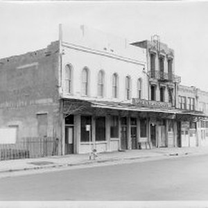 Exterior view of the east side of the 1000 block of Front Street between J and K Streets in Sacramento. This view shows the Pacific Coast Paper Company and the Newton Booth Store at 1023 Front Street.