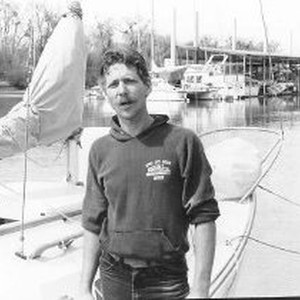 Unidentified man wearing sweatshirt reading, "River City Queen Captain," poses with marina behind him.